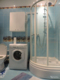 Ванная комната: душевая кабина, гигиенический душ, стиральная машина Hotpoint Ariston, фен.